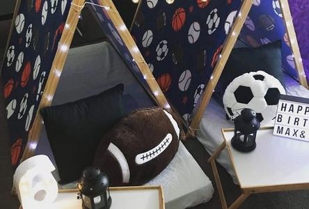 DROP!!! Each tent set up includes military themed covers, lanterns, outdoor themed pillows, tray tables and blankets. Add on treats such as "DROP" party bags and Fortnite themed balloons are available. You only get 'one shot' at this awesome party!!
